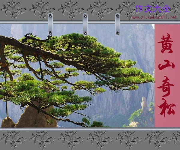 黄山松树有各种形状和大小。有些像龙的爪子一样有根,有些像盘绕的龙一样躺着,有些像巨人一样强壮,有些张开翅膀飞翔,还有一些很有礼貌。它们飞上天空。或者靠近岩壁;或者从石头的根部;或者倒挂金钩.他们用自己的毅力和毅力照亮了黄山。它使黄山更加神奇,更加美丽,更加壮观。
