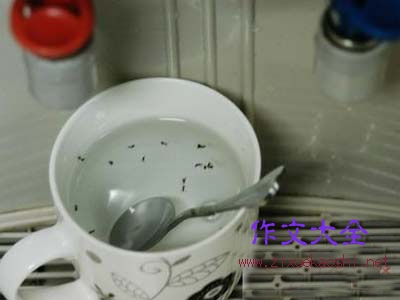 一天,我看到一只蚂蚁在辛勤地搬运食物。我想捉弄他们。我在瓶盖里灌了一点水,然后洒在上面。我惊讶地发现蚂蚁会游泳,它们的幼仔可以一推就游。这真的很像蛙泳!他们继续搬运食物,就像说,“好险。差点被洪水淹死!”前面有一只大蚂蚁,它应该说:“兄弟们,快点离开!”
